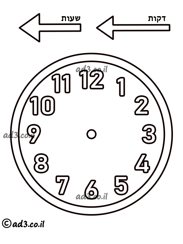 הדפיסו את השעון, גזרו את המחוגים וחברו עם סיכה מתפצלת.