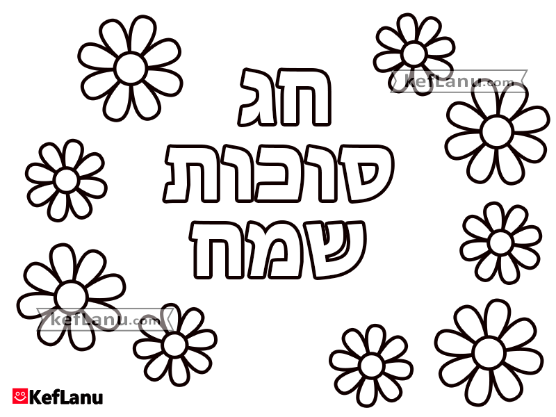 דף צביעה להדפסה - חג סוכות שמח.