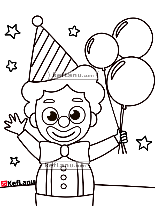 דף צביעה של ליצן להדפסה.