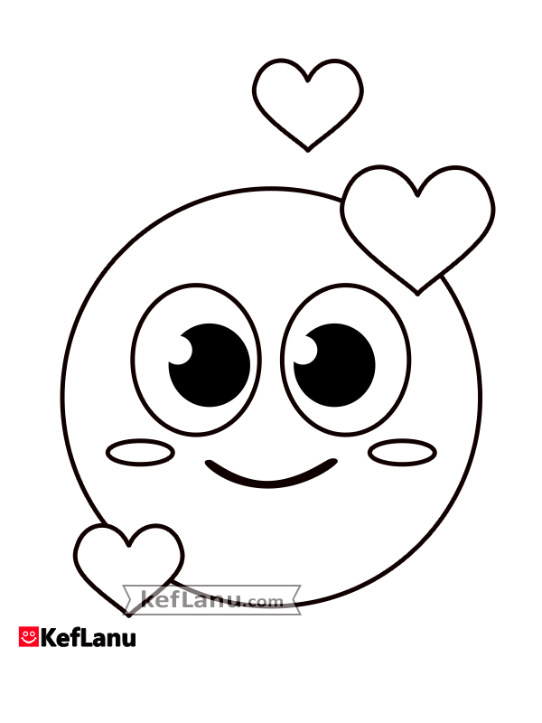דף צביעה אימוג'י עם לבבות להדפסה.