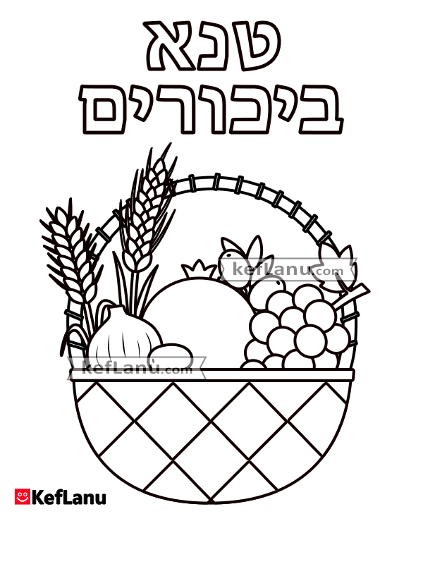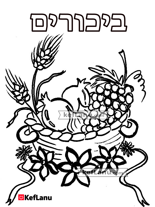 סל ביכורים עם פירות משבעת המינים: חיטה, שעורה, גפן, רימון, זית, תאנה ותמר.