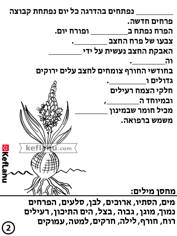השלימו את המשפטים בעזרת המחסן מילים בתחתית הדף.